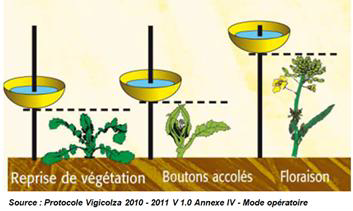Positionnez-les pièges/cuvettes pour le charançon de la tige du colza.