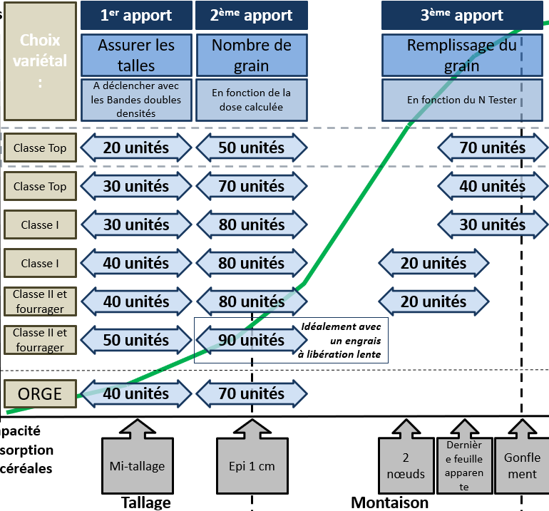 Effectuez le premier apport d'azote dès la reprise de végétation et avant une pluie confirmée d'au moins 10 mm. La reprise de végétation est déjà effective.