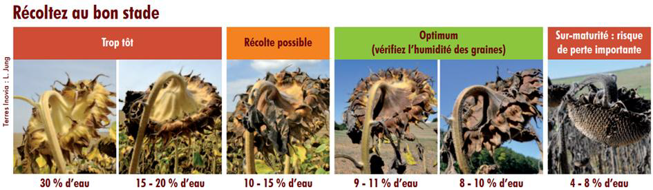 Tournesol : Évitez la sur-maturité pour limiter les pertes.