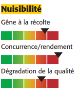 Lamier pourpre | ![]() | ![]() | ![]() | Le seuil de nuisibilité du lamier pourpre est atteint à partir de 10 plants au m². Chaque plante produisant 60 à 300 graines, dont la dormance au sol peut aisément atteindre 8 à 9 ans de viabilité. |
