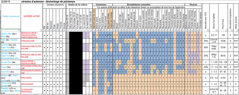 CLIC :contre les graminées avant le stade 2 noeuds (stade BBCH32) contre (raygras, vulpins et folle avoine)